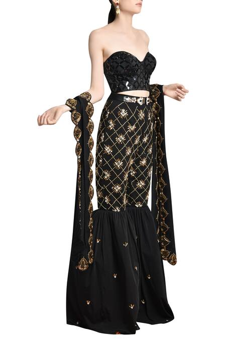 Buy_Shivan & Narresh_Black Embellished And Blade Mesh Skein Bustier_at_Aza_Fashions