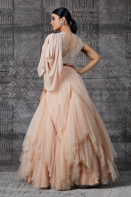 Buy_Shantnu Nikhil_Peach Embellished Blouse And Lehenga Set_at_Aza_Fashions
