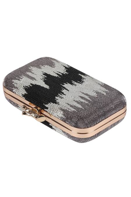 Buy_Durvi_Grey Beads Embellished Box Clutch_at_Aza_Fashions