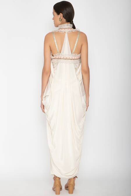Buy_Varun Bahl_White Viscose Crepe Notched Embellished Cape With Top_at_Aza_Fashions