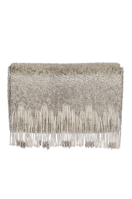 Rectangular clutch , Bead fringe detail, Note: Detachable handle available on request at additional price