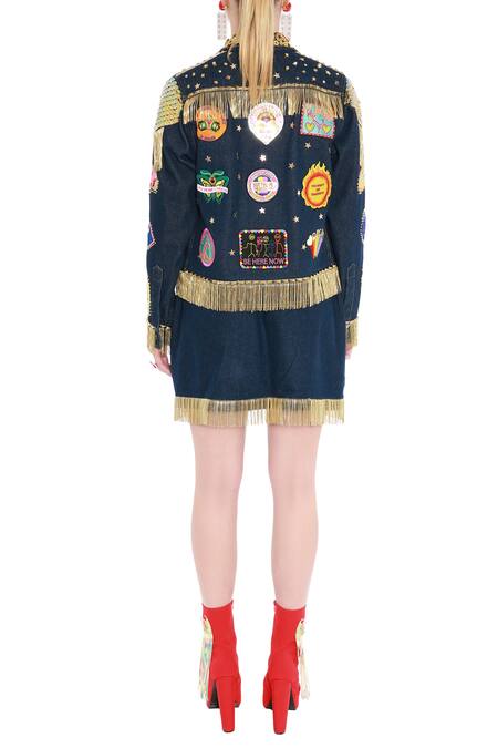 Embellished, Flap pockets, Metallic fringe hem, Note:, Inner top & jacket worn by the model is not for sale