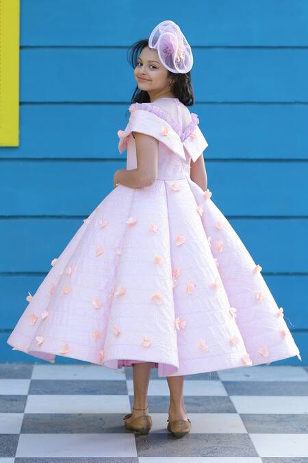Lilac dress with all over texture & placement 3D floral embellishment. Comes with hair accessorie.