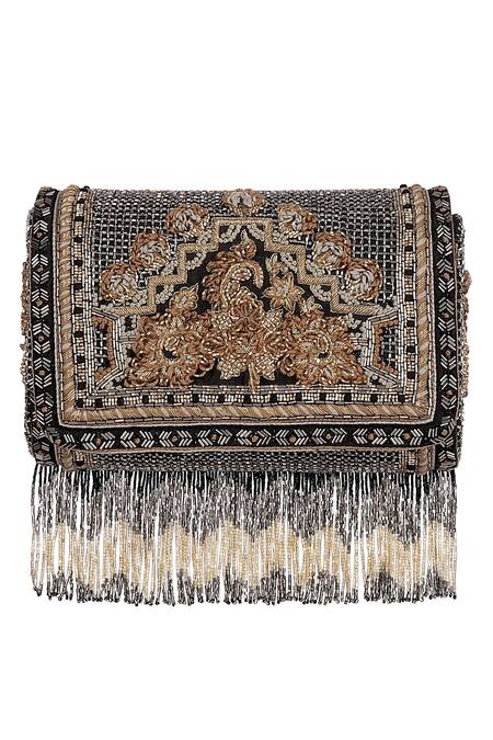 Black clutch with all over luminous Japanese micro bead and glass crystal work