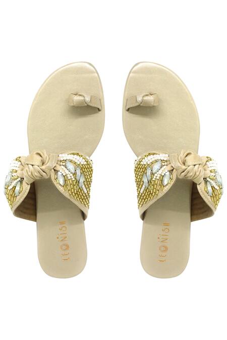 Buy_Leonish_Gold Embellished Flat Sandals_at_Aza_Fashions