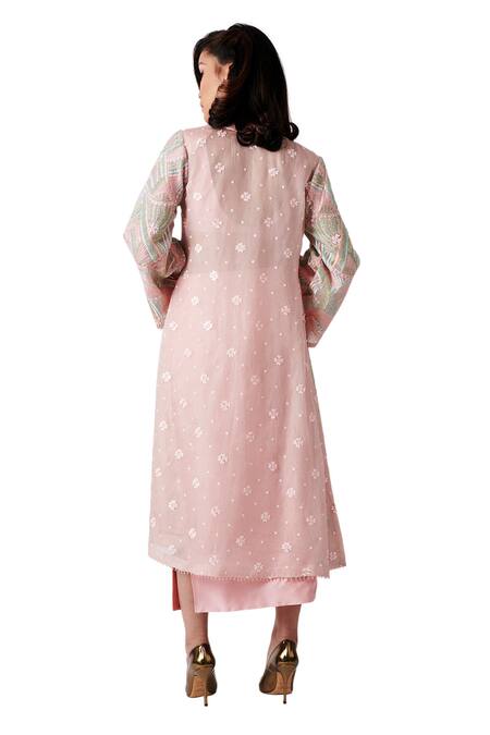 Pink Taffeta Embroidery Open Embellished Jacket And Skirt Set