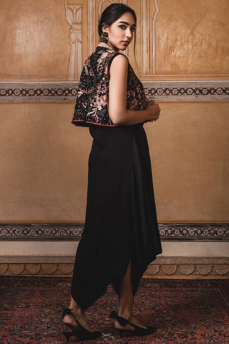 Buy_Tarun Tahiliani_Black Silk Dupion Embellished Jacket _Online_at_Aza_Fashions
