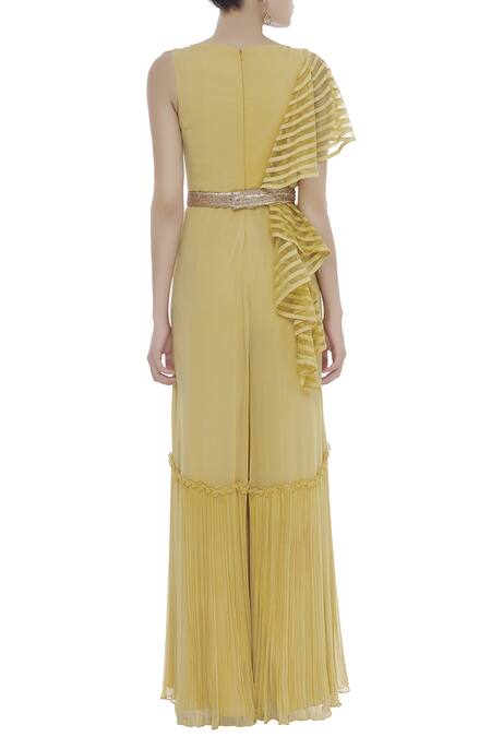 Yellow Embellished Jumpsuit With Belt
