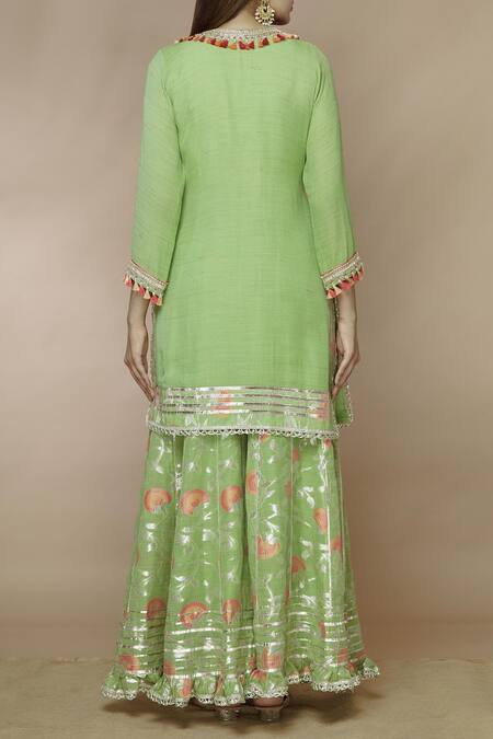 Green Tussar Georgette Embellished Kurta Sharara Set