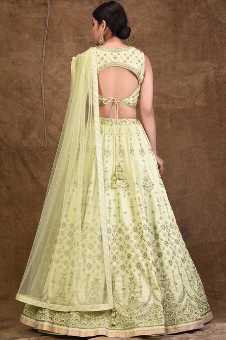 Green Silk, Net Gota Patti, Embroidery, Sequins Embellished Bridal Lehenga Set