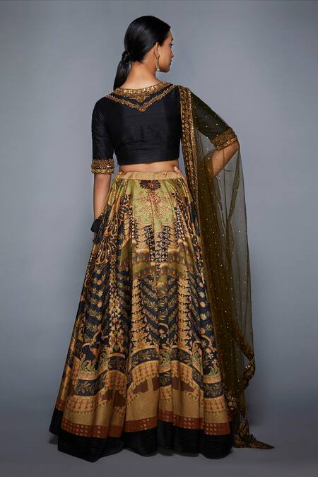 Buy_RI.Ritu Kumar_Black Poly Dupion Round Embellished Lehenga Set_at_Aza_Fashions