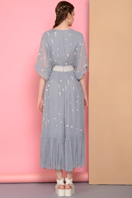 Buy_Sahil Kochhar_Blue Bemberg Chiffon Plunge Neck Embellished Midi Dress_Online_at_Aza_Fashions