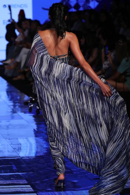 Buy_Punit Balana_Blue Chiffon Halter Embellished Saree With Blouse _at_Aza_Fashions