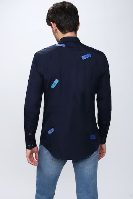 Blue Spandex, Giza Cotton Embellished Shirt