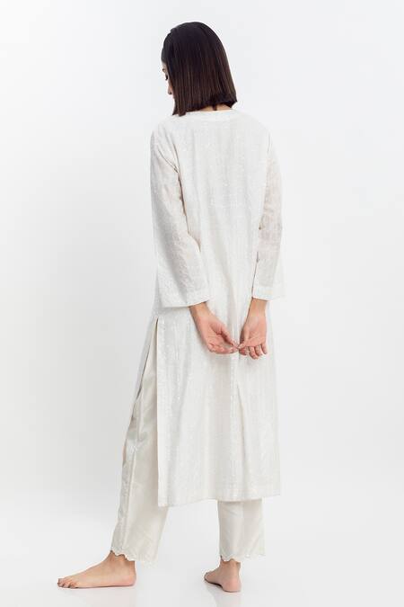 White Silk, Chanderi Round Embellished Straight Kurta Set