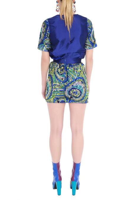 Buy_Manish Arora_Blue Net Round Embellished Top _Online_at_Aza_Fashions