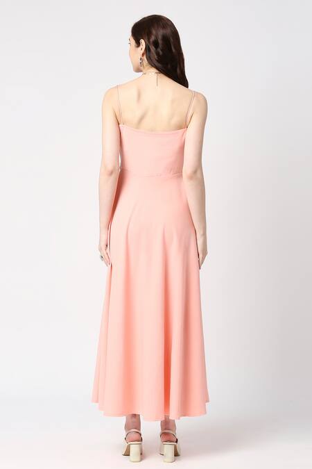 Peach long padded dress featuring a sweetheart neckline and noodle straps