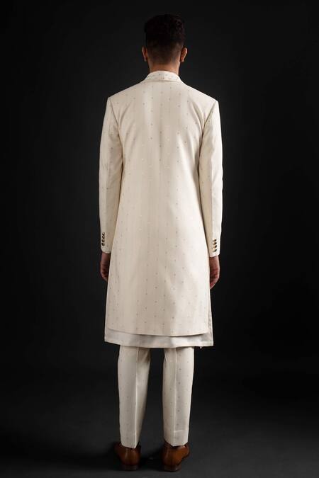 White Metallic Jacquard Embroidered Achkan And Kurta Set