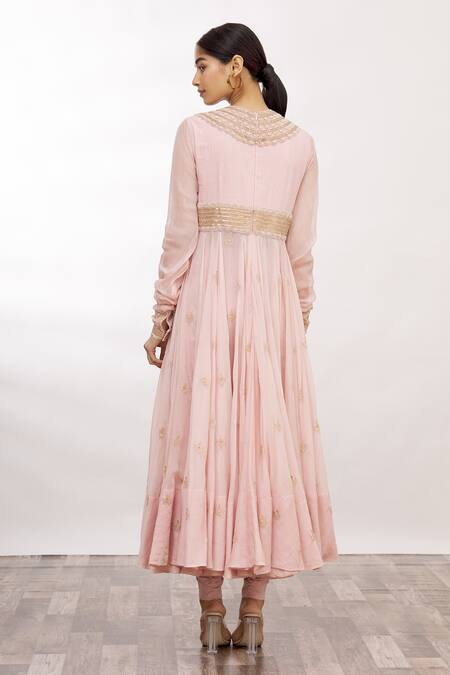 Buy_Anamika Khanna_Pink Embroidered Anarkali Set_at_Aza_Fashions
