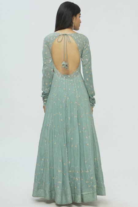 Blue anarkali with thread embroidery & sequin embellishment. Comes with georgette dupatta.