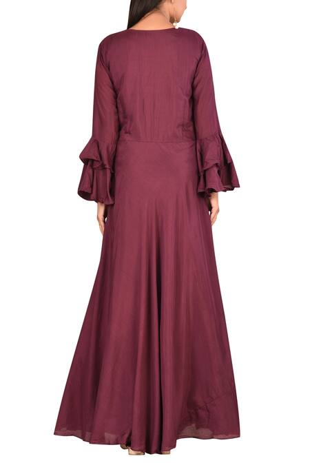 Buy_Nazaakat By Samara Singh_Wine Muslin Embroidered Anarkali_at_Aza_Fashions