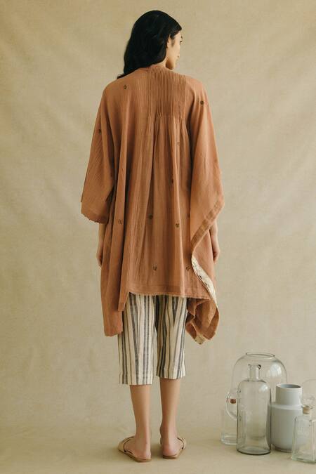 Brown Cotton Poplin Embroidered Asymmetric Tunic