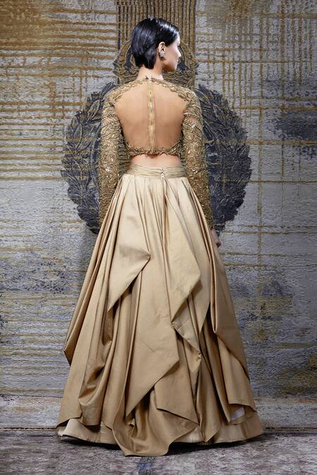 Buy_Shantnu Nikhil_Gold Embroidered Blouse And Lehenga Set_Online_at_Aza_Fashions