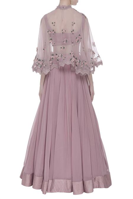 Pink Embroidered Cape Lehenga Set