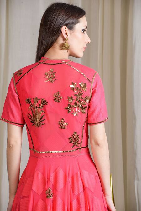 Buy_Sahil Kochhar_Pink Dupion Silk Embroidered Mukaish Work Jacket Lehenga Set _at_Aza_Fashions