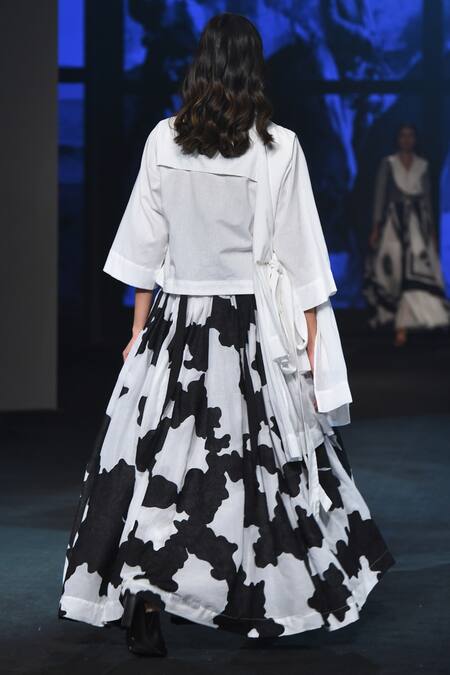 White jacket paired with sequin embellished crop top. This set comes with applique worked maxi skirt.