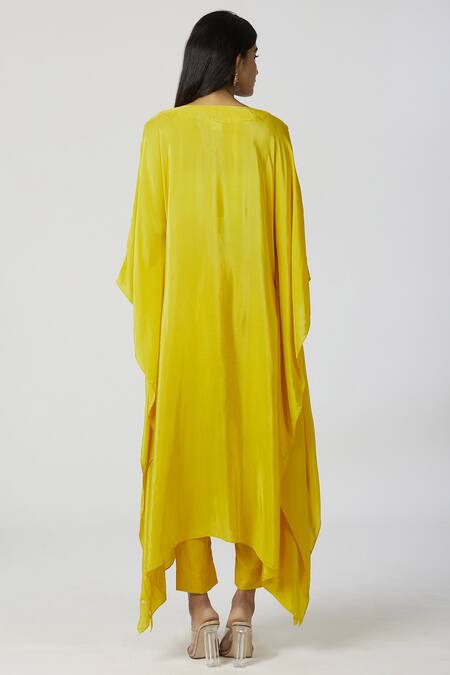 Buy_Bohame_Yellow Crepe, Twill V Neck Embroidered Kaftan Pant Set_Online_at_Aza_Fashions