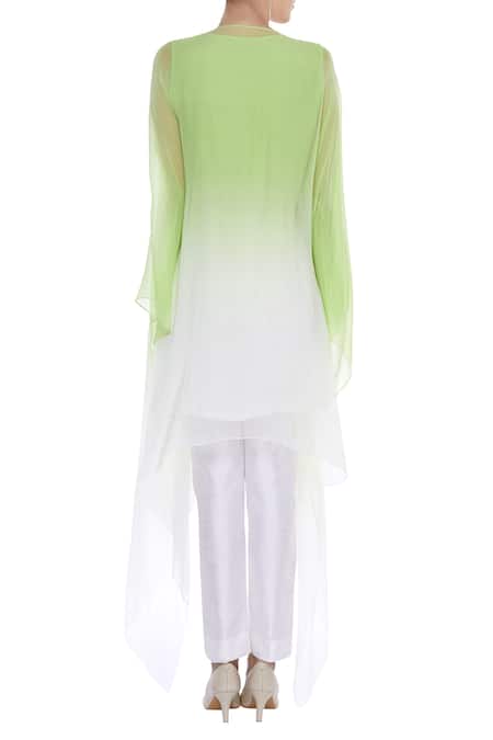 Keep it uber classic in this cape and inner in green and white. The cutdana and bead embroidery add nuance.