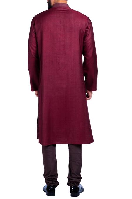 Maroon embroidered kurta with a concealed placket. Comes with churidar pant.