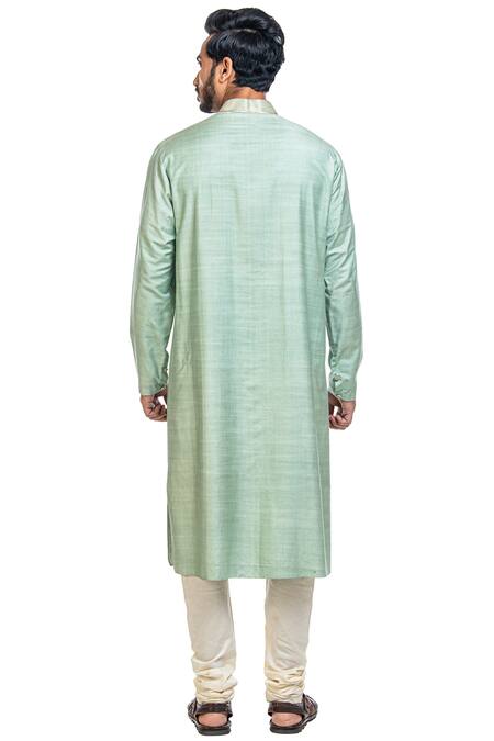 Blue Moonga Silk Embroidered Kurta Set