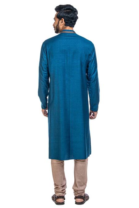 Blue kurta with asymmetrical button placket & floral embroidered motifs. Comes with churidar.