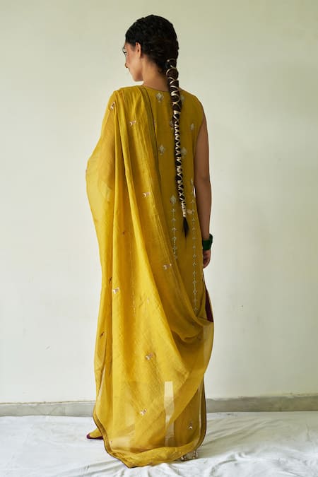 Buy_Kanika Sharma_Yellow Kurta Summer  Dupatta Chanderi Round Embroidered Set _at_Aza_Fashions