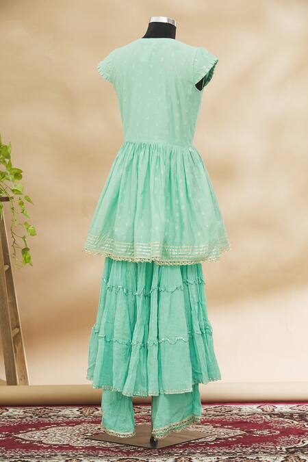 Green Embroidered Kurta And Sharara Set