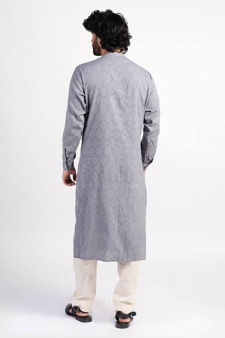 Grey kurta with pearl embroidered motifs. Comes with scarf.