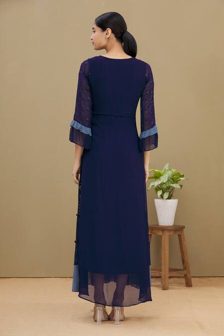 Blue Georgette Round Embroidered Kurta