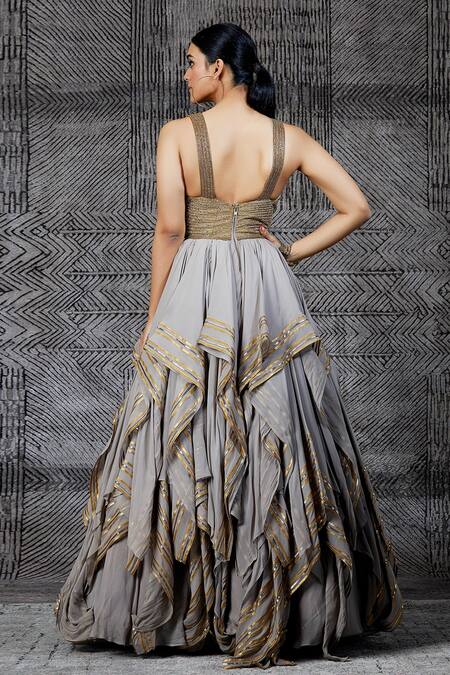 Grey Embroidered Layered Gown