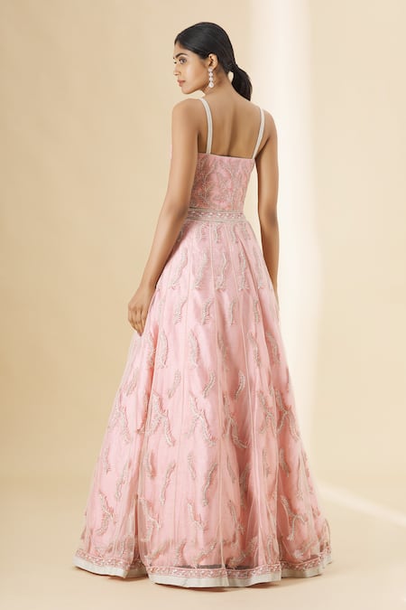 Pink Silk, Net Sequins, Embroidery Sweetheart Neck Lehenga Set