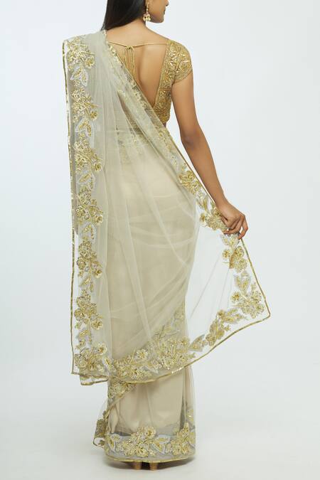 Buy_Bhairavi Jaikishan_Off White Embroidered Net Saree_Online_at_Aza_Fashions