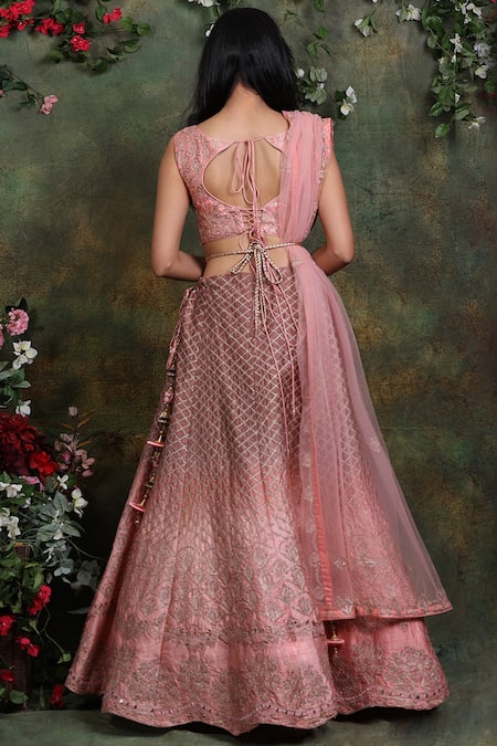 Shop_Archana Kochhar_Pink Lehenga And Blouse Raw Silk Dupatta Net Kasab Work Embroidered Ombre Set _at_Aza_Fashions