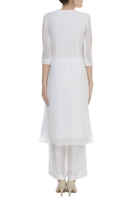White Silk Chanderi Embroidery Resham Thread Collar Panel Kurta