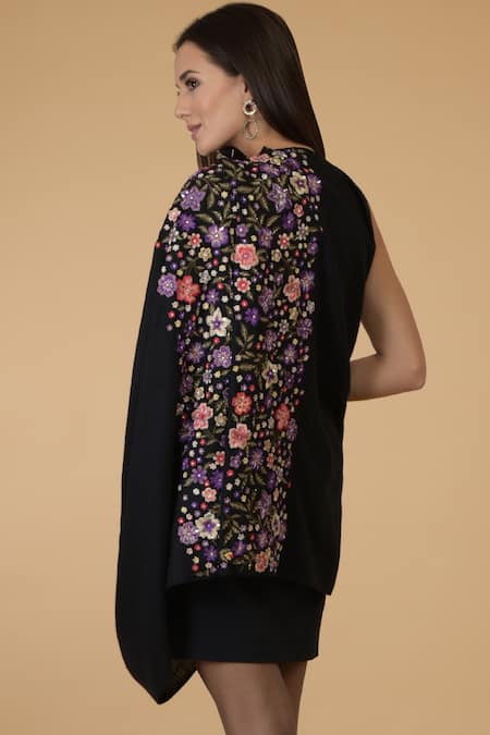 Shop_Talking Threads_Black Embroidered Pashmina Stole_at_Aza_Fashions