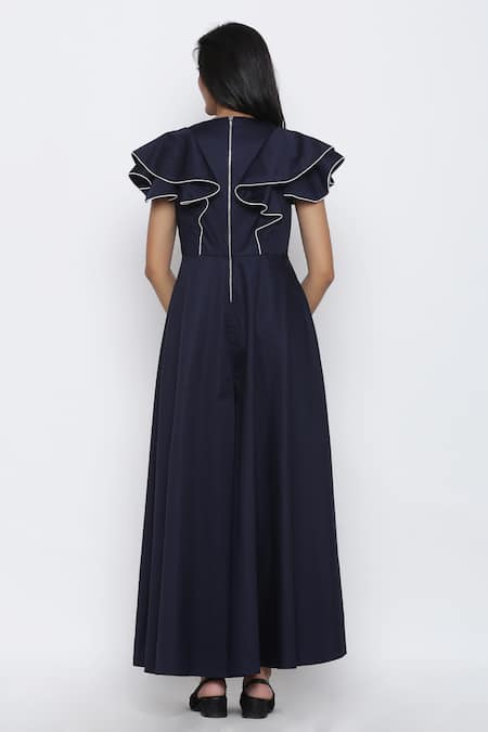 Draped flared sleeves with contrasting piping, Flared bottom design, Back zipper closure for easy wear