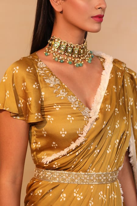 Buy_Esha Koul_Yellow Embroidery Floral Belt _Online_at_Aza_Fashions