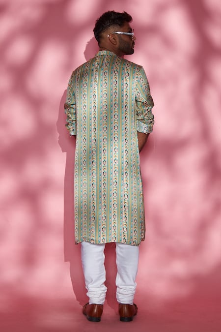 Multicolor kurta with floral printed motifs in a striped pattern.