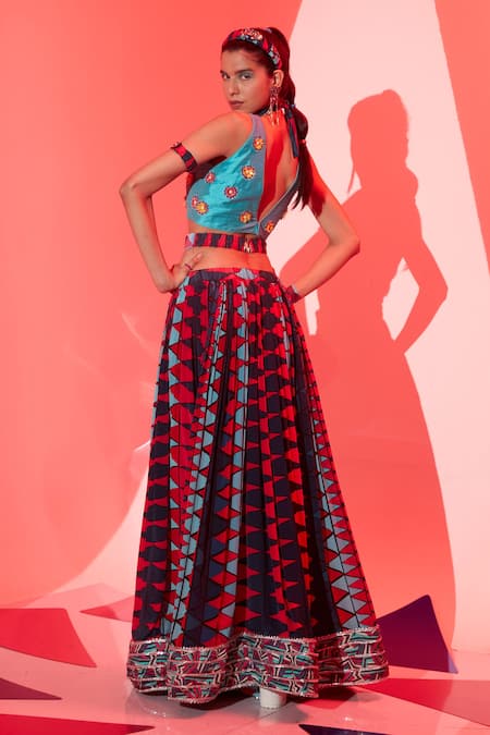 Multi Color Viscose Gota Patti Geometric Print Lehenga
