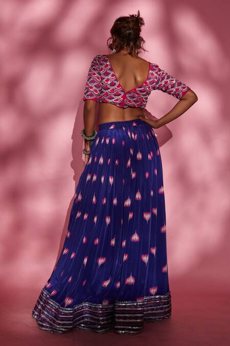 Purple Modal Satin And Butter Crepe Lotus Print Lehenga